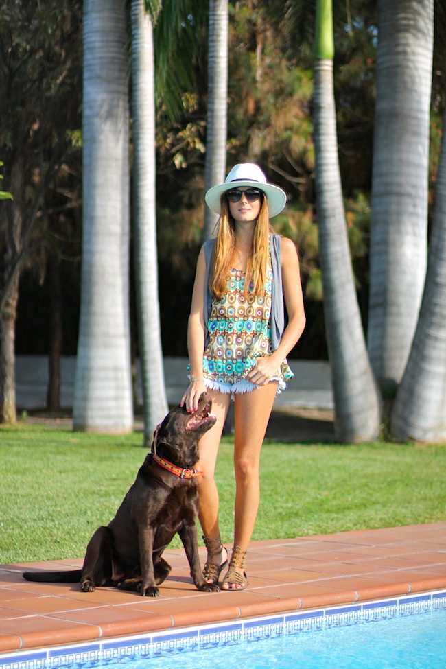 I really love all, your look, your bikini, the dog and the place...I want to come there for a dive in the swimmingpool!!!! ;))) Besos,Paolo