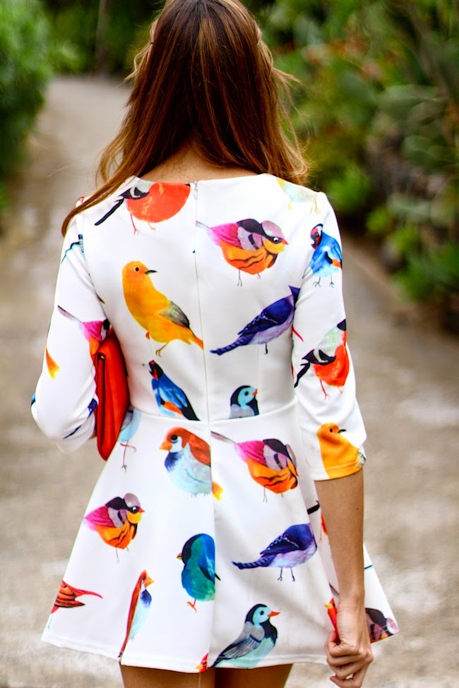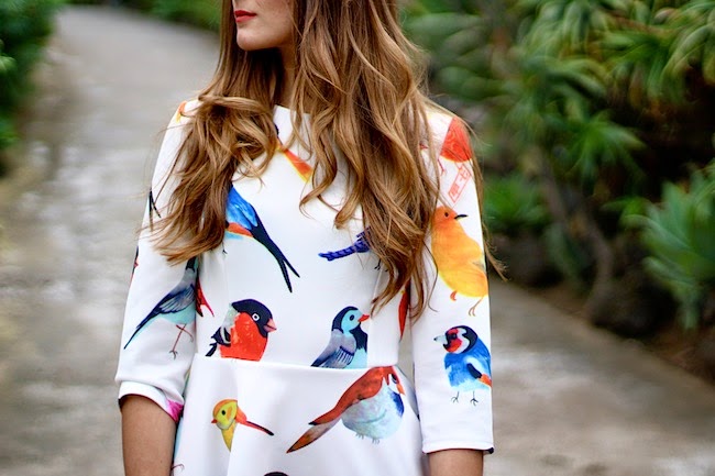El color es precioso, los zapatos ideales con los detalles en el mismo color de los pájaros, estás guapísima!